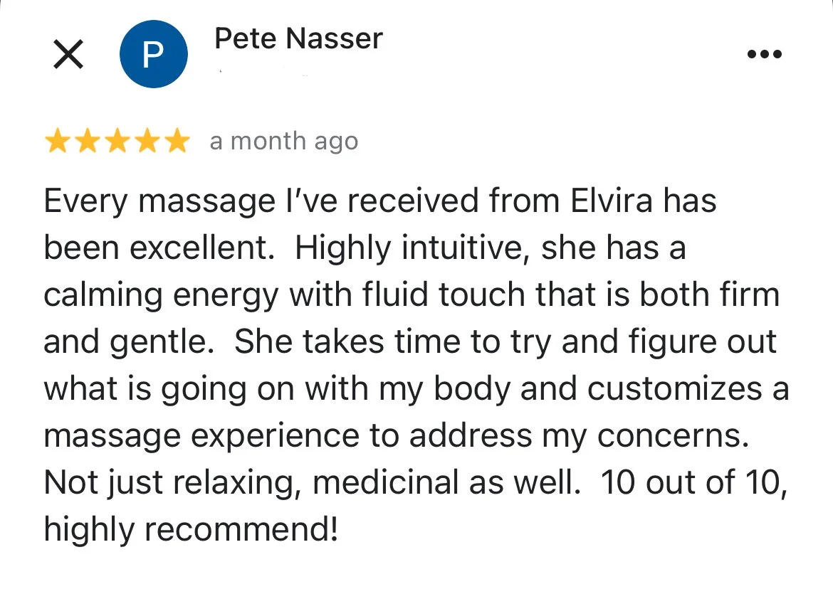 Hi! I am Elvira G, Licensed Massage Therapist in Portland Oregon,